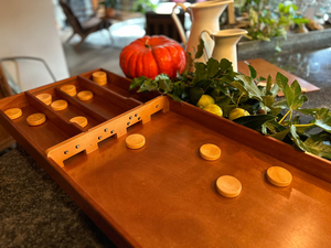 We had a family Sjoelbak table when I was a child, and can recall the excitement, laughter and competition that a game would bring out in us with our family and friends every time we played. I am now an older adult, and decided it was time to purchase one of my own tables. I was thrilled to see that the workmanship far exceeded what I had hoped - the wood is smooth, beautifully finished, and I haven't even had to think about talcum powder to help the discs slide. Delivery was carefully done, the board arrived in pristine condition, and we have already had enormous fun with it. I expect it will last for another few generations of fun, love, and memory-making. Worth every cent! (Now I just need to figure out how to fit it in my car to take on holidays!)